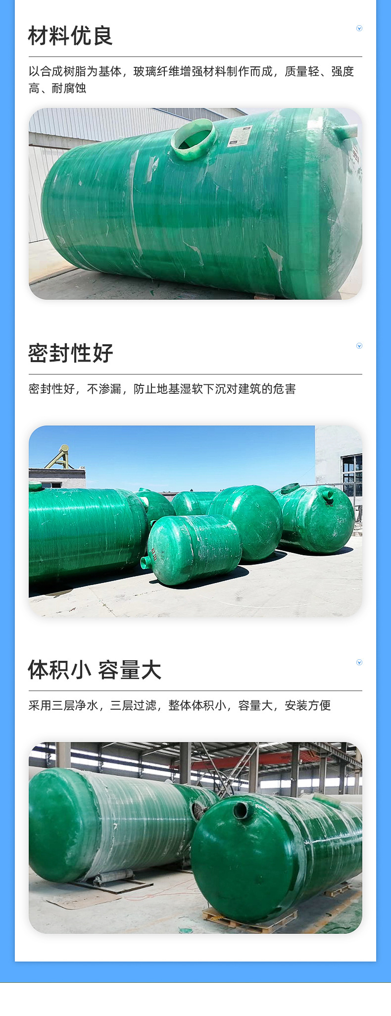 山東環(huán)通復(fù)合材料有限公司成立于2011年,是從事玻璃鋼化糞池產(chǎn)品的企業(yè),公司位于山東濰坊安丘市。玻璃鋼化糞池有1立方、2立方3立方、4立方、5立方、10立方、12立方、15立方、20立方、25立方、30立方、50立方等,顏色分為:綠色、藍(lán)色、黃色等。公司產(chǎn)品主要分為:玻璃鋼儲(chǔ)罐容器,玻璃鋼化糞池,玻璃鋼隔油池,玻璃鋼加砂管道,玻璃鋼化糞池,玻璃鋼脫硫塔,玻璃鋼格柵,玻璃鋼防腐,玻璃鋼儲(chǔ)罐,玻璃鋼管件等。